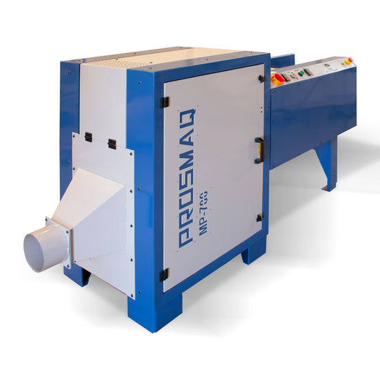 All Crushers come with a Conveyor Exhaust attached to the machine itself to transport the flakes to a warehouse or silo. The format of the Conveyor Exhaust is in a "snail" which guarantees greater propulsion of the foam flakes.